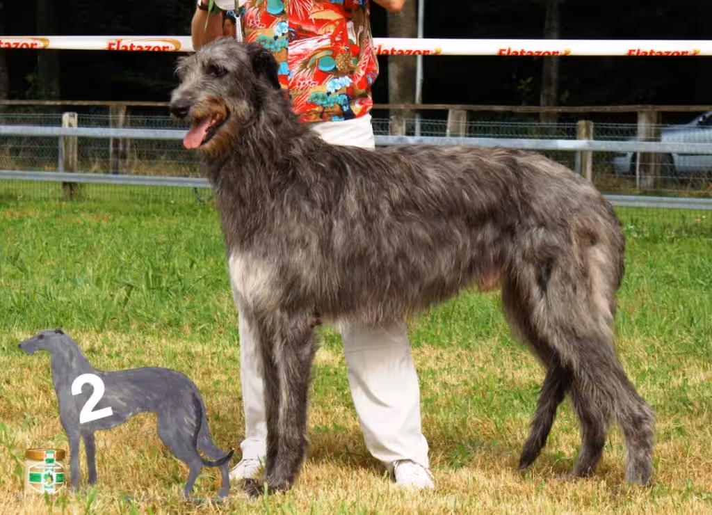 Shona stammt aus der Traumverbindung Lehigh Yanker the Deerhunter x Yarrow the Deerhunter und hat sich für uns auch zu einem Traumhund entwickelt. Lange, fliessende Linien und eine hochelegante, trotzdem kraftvolle Gesamterscheinung zeichneten sie aus. Sie war ein sehr erfolgreicher Ausstellungshund. Neben dem Titel „Schweizer Schönheitschampion“ erlangte sie an der Clubschau des Deerhoundclubs der Schweiz unter dem Spezialrichter Björn Fritz aus Deutschland den Titel „Clubsieger“ und „Beste der Rasse“ 2005, ihr Vater Miles (Lehigh Yanker the Deerhunter) wurde an der selben Ausstellung „Best of Opposite Sex“. 2004 und 2005 erhielt sie zudem den Spezialpreis „Bester Kopf und Ausdruck“. Auf der Bahn lief Shona sehr zuverlässig und sicher, ihre wahre Leidenschaft ar aber Coursing. Leider schien sie dabei in die Fussstapfen ihrer Mutter Yarrow getreten zu sein und folgte dem Hasen nicht immer spurtreu. Sie ist die Gewinnerin der Swisscombitrophy 2007 (Kombination Ausstellung – Coursing in Lotzwil).