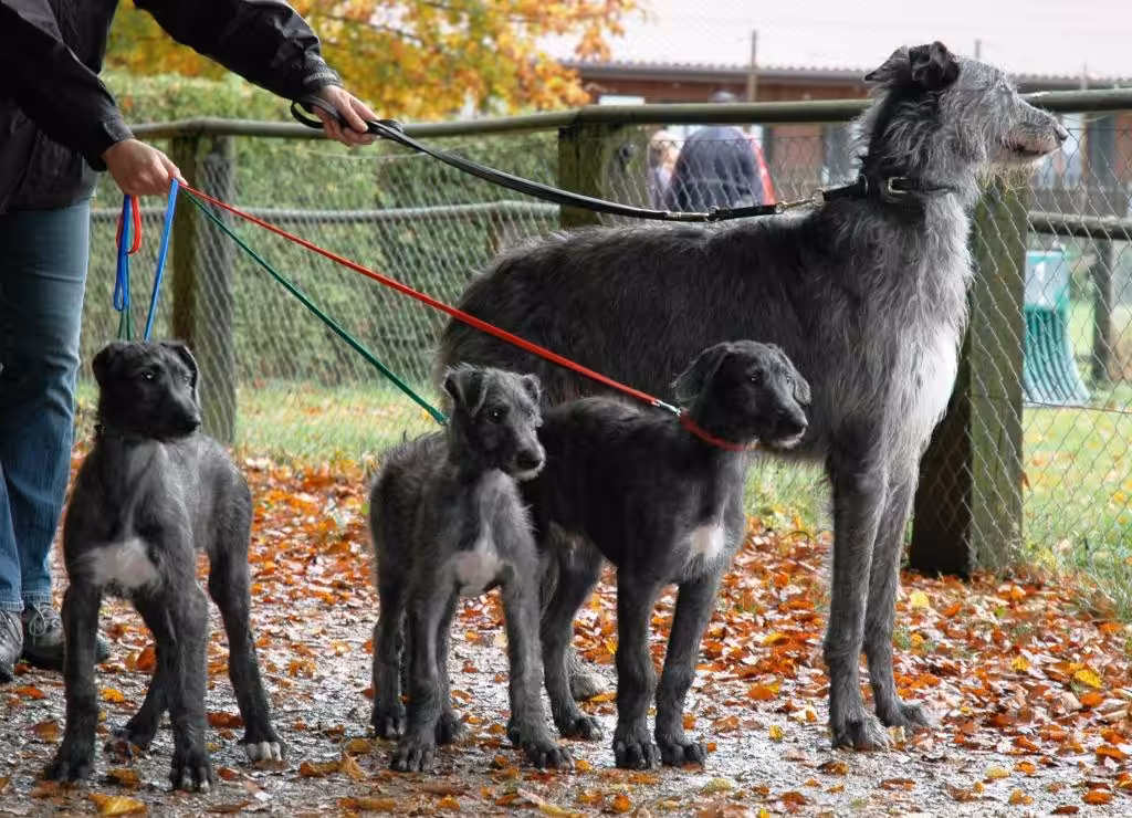 Wir züchteten Deerhounds unter dem Zwingernamen „the Deerhunter“ und Salukis unter dem Zwingernamen „Sharaf al Bait“. Unsere Würfe erhielten Rufnamen in alphabetischer Reihenfolge, allerdings haben wir mit dem E-Wurf und nicht mit dem A-Wurf begonnen, und die Benennung erfolgte chronologisch, d.h. Saluki- und Deerhound-Würfe wechseln sich ab.