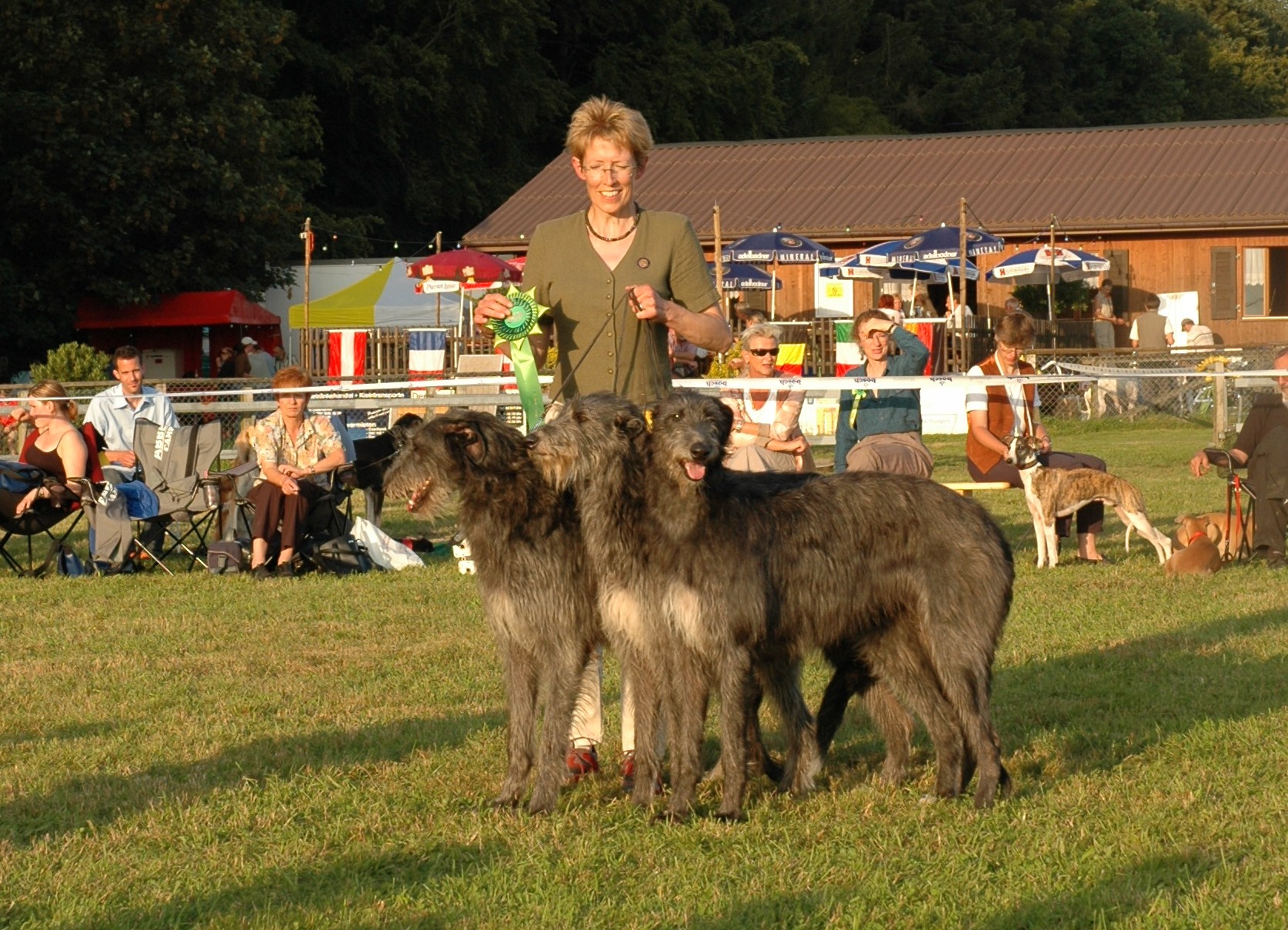 Geworfen am 30.7.94 Paganach kam für diesen Wurf zu uns zurück, gedeckt von Karin Jansen-Jödickes Rüden Glen Coe, der auf Farland aus unserem ersten Wurf zurückgeht. Da Paganach künstlich besamt worden war, waren wir glücklich über diese beiden Welpen. Nicht verwunderlich war, dass sie per Kaiserschnitt zur Welt kamen. Urquhart ging mit seiner Mutter zu Familie Germain zurück, Una blieb bei uns. Beide waren sehr erfolgreiche Ausstellungshunde, die in kurzer Zeit mehrere Champion-Titel erhielten, und begeisterte Courser, Una gewann die Coursing-Jahreswertung des Deerhound-Clubs der Schweiz. Leider verstarben beide sehr früh, -Urquhart mit knapp 3 Jahren, Una mit knapp dreieinhalb Jahren- infolge des selben Leberproblems, das aber nicht näher bestimmt werden konnte. (Nachgewiesen werden konnte mit Sicherheit, dass es kein Livershunt war.)