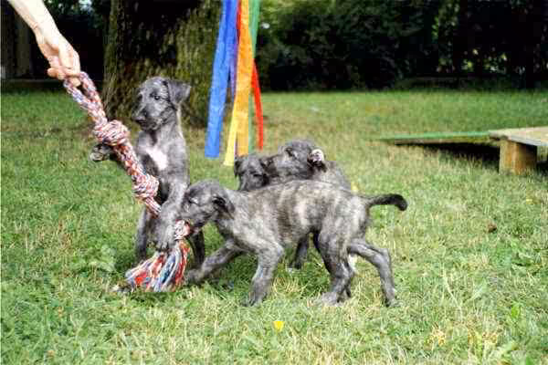 Geworfen am 11.8.2010 In der Hoffnung, den Typ Deerhound zu bekommen, der uns persönlich anspricht, haben wir für Doune den Australier Claidhembor Cattanach ausgewählt. Die Welpen entwickeln sich exterieurmässig auch wunschgemäss und sind vom Temperament her lebhaft, aber sehr ausgeglichen und gesetzt.