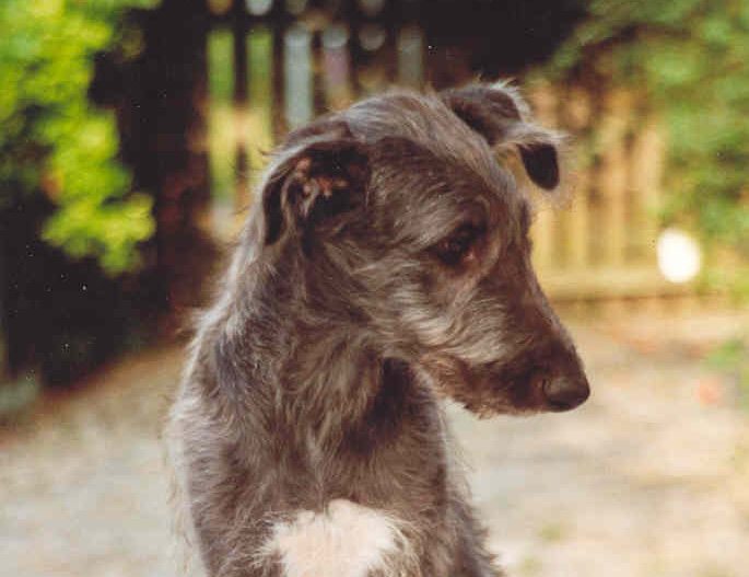 Geworfen am 6.6.93 Als wir den ursprünglich aus Nordirland stammenden und von Susanne Ottofülling nach Deutschland importierten Chisum benutzten, wussten wir noch nicht, dass er der bisher am häufigsten im deutschen Sprachraum resp. auf dem ganzen Kontinent benutzte Deckrüde sein würde. Da er sehr viel Typ und auch Adel vererbte, ist dies auch nicht verwunderlich. So sind wir mit diesem Wurf sehr zufrieden. Tulla wurde Mutter unserer V-Wurfes. Tiree lebt bei Adrienne Strese, die nun ebenfalls Deerhounds züchtet.